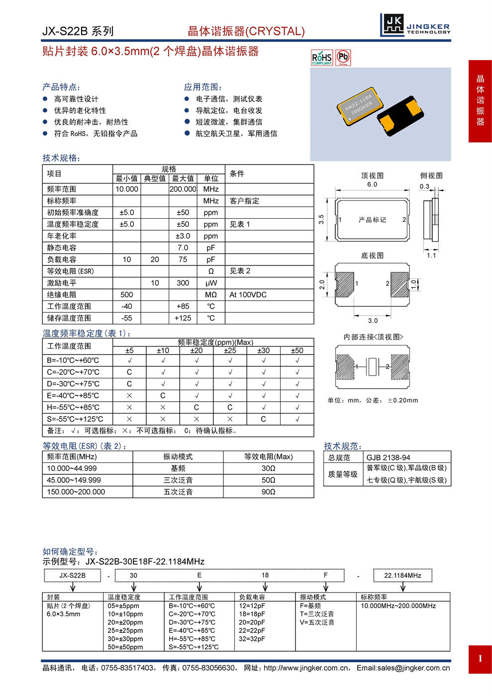 产品特点:高可靠性设计;优异的老化特性;优良的耐冲击,耐热性;符合RoHS,无铅指令产品。应用范围:电子通信,测试仪表;导航定位,电台收发;短波微波,集群通信;航空航天卫星,军用通信。