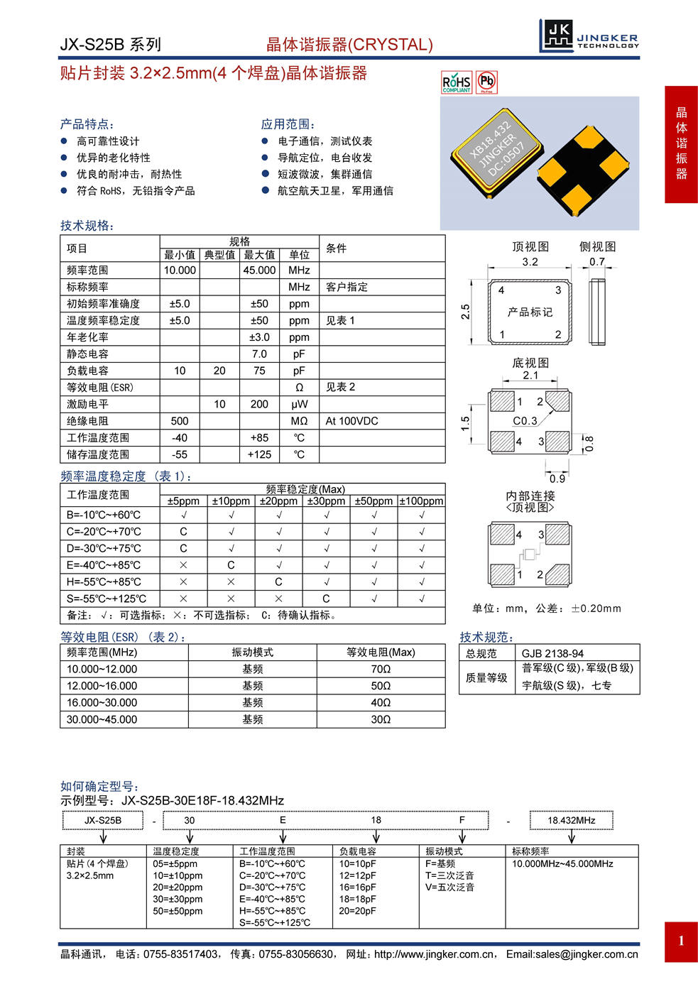 产品特点:高可靠性设计;优异的老化特性;优良的耐冲击,耐热性;符合RoHS,无铅指令产品。应用范围:电子通信,测试仪表;导航定位,电台收发;短波微波,集群通信;航空航天卫星,军用通信。