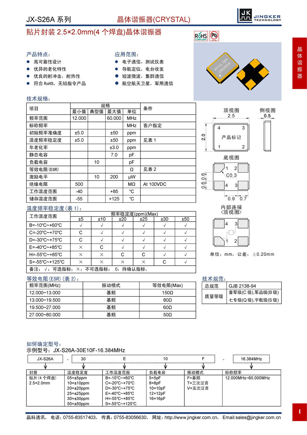 产品特点:高可靠性设计;优异的老化特性;优良的耐冲击,耐热性;符合RoHS,无铅指令产品。应用范围:电子通信,测试仪表;导航定位,电台收发;短波微波,集群通信;航空航天卫星,军用通信。