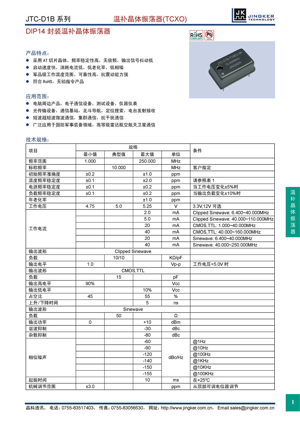 产品特点:采用AT切片晶体,频率稳定性高,无倍频,输出信号抖动低;启动速度快,消耗电流低,低老化率,低相噪;军品级工作温度范围,可靠性高,抗震动能力强;符合RoHS,无铅指令产品。应用范围:电脑周边产品,电子通信设备,测试设备,仪器仪表;光传输设备,通信基站,北斗导航,定位搜索,电台发射接收;短波超短波微波通信,集群通信,抗干扰通信;广泛应用于国防军事装备领域,高等级雷达航空航天卫星通信。