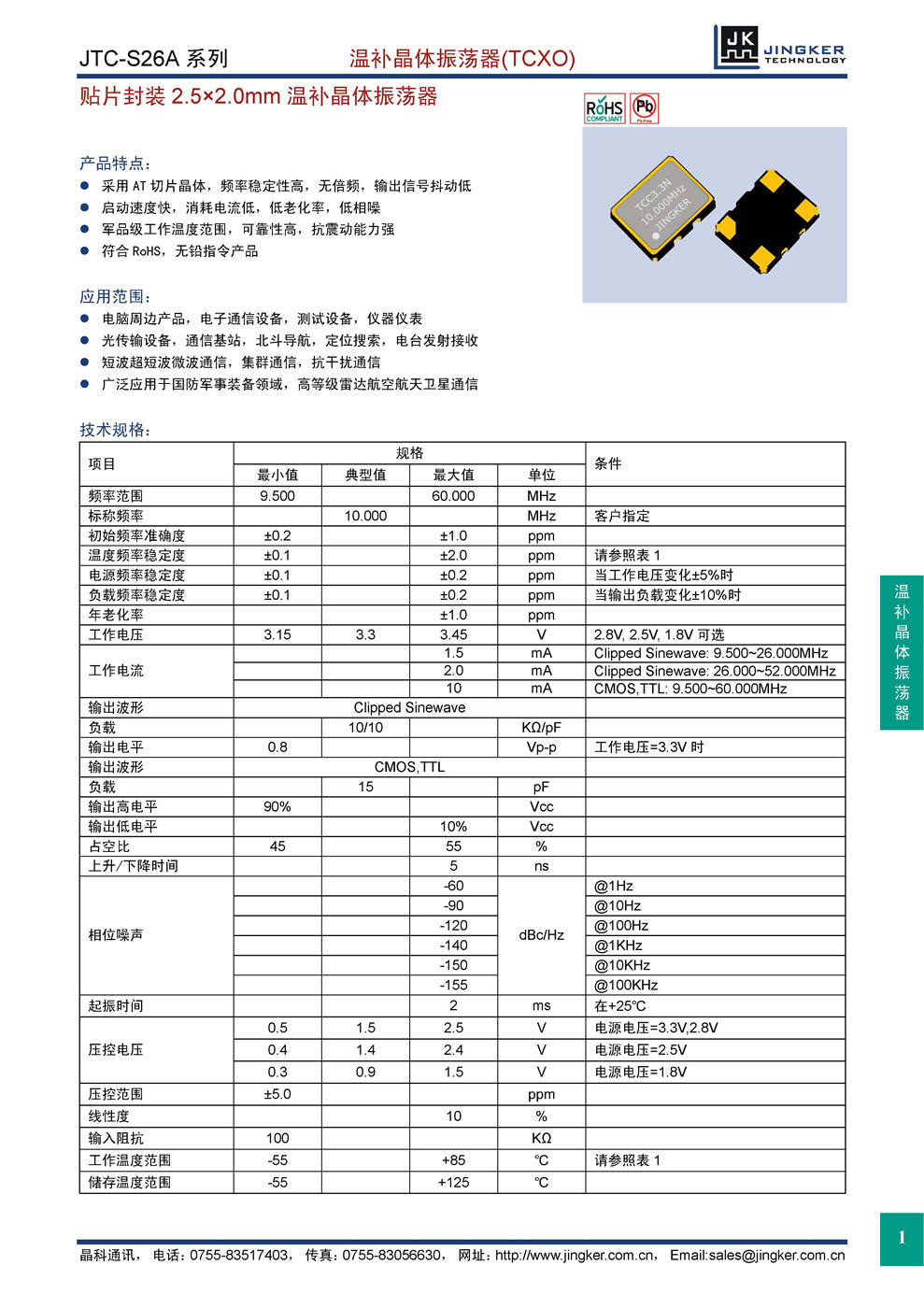 产品特点:采用AT切片晶体,频率稳定性高,无倍频,输出信号抖动低;启动速度快,消耗电流低,低老化率,低相噪;军品级工作温度范围,可靠性高,抗震动能力强;符合RoHS,无铅指令产品。应用范围:电脑周边产品,电子通信设备,测试设备,仪器仪表;光传输设备,通信基站,北斗导航,定位搜索,电台发射接收;短波超短波微波通信,集群通信,抗干扰通信;广泛应用于国防军事装备领域,高等级雷达航空航天卫星通信。