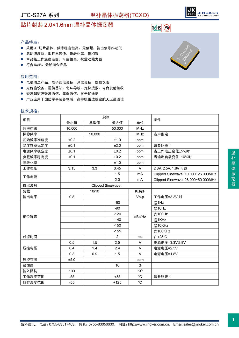 产品特点:采用AT切片晶体,频率稳定性高,无倍频,输出信号抖动低;启动速度快,消耗电流低,低老化率,低相噪;军品级工作温度范围,可靠性高,抗震动能力强;符合RoHS,无铅指令产品。应用范围:电脑周边产品,电子通信设备,测试设备,仪器仪表;光传输设备,通信基站,北斗导航,定位搜索,电台发射接收;短波超短波微波通信,集群通信,抗干扰通信;广泛应用于国防军事装备领域,高等级雷达航空航天卫星通信。
