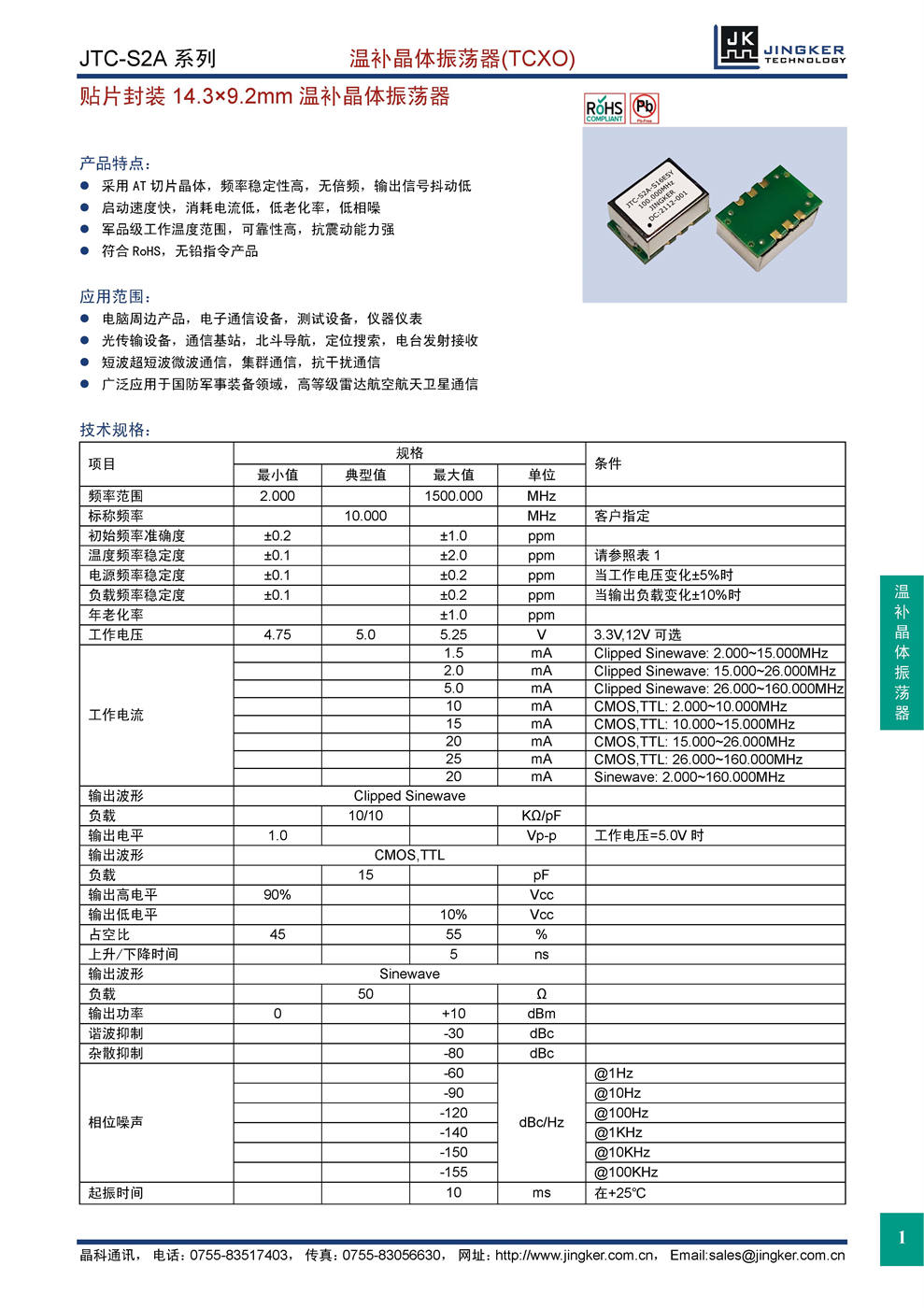 产品特点:采用AT切片晶体,频率稳定性高,无倍频,输出信号抖动低;启动速度快,消耗电流低,低老化率,低相噪;军品级工作温度范围,可靠性高,抗震动能力强;符合RoHS,无铅指令产品。应用范围:电脑周边产品,电子通信设备,测试设备,仪器仪表;光传输设备,通信基站,北斗导航,定位搜索,电台发射接收;短波超短波微波通信,集群通信,抗干扰通信;广泛应用于国防军事装备领域,高等级雷达航空航天卫星通信。