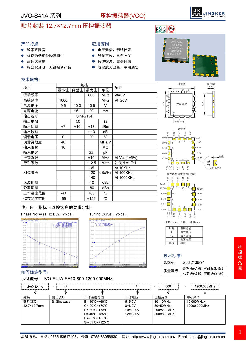 产品特点:频率范围宽;优良的低相位噪声特性;高调谐速度;符合RoHS,无铅指令产品。应用范围:电子通信,测试仪表;导航定位,电台收发;短波微波,集群通信;航空航天卫星,军用通信。