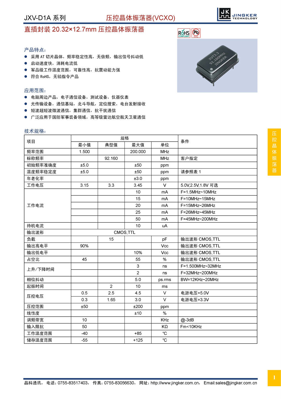 产品特点:采用AT切片晶体,频率稳定性高,无倍频,输出信号抖动低;启动速度快,消耗电流低;军品级工作温度范围,可靠性高,抗震动能力强;符合RoHS,无铅指令产品。应用范围:电脑周边产品,电子通信设备,测试设备,仪器仪表;光传输设备,通信基站,北斗导航,定位搜索,电台发射接收;短波超短波微波通信,集群通信,抗干扰通信;广泛应用于国防军事装备领域,高等级雷达航空航天卫星通信。