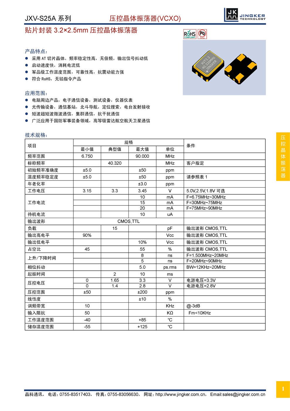 产品特点:采用AT切片晶体,频率稳定性高,无倍频,输出信号抖动低;启动速度快,消耗电流低;军品级工作温度范围,可靠性高,抗震动能力强;符合RoHS,无铅指令产品。应用范围:电脑周边产品,电子通信设备,测试设备,仪器仪表;光传输设备,通信基站,北斗导航,定位搜索,电台发射接收;短波超短波微波通信,集群通信,抗干扰通信;广泛应用于国防军事装备领域,高等级雷达航空航天卫星通信。